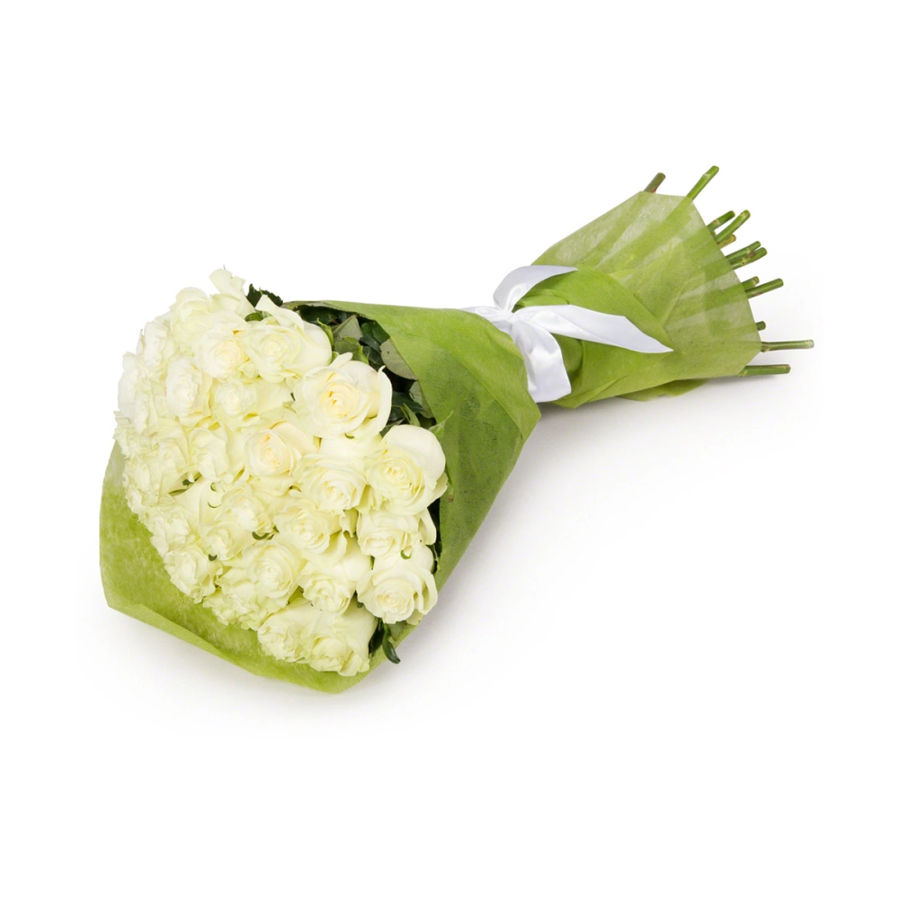 Элегантный букет из белоснежных роз в благородной фетровой упаковке — воплощение чистоты и божественной гармонии. Универсальный подарок для самых важных людей в вашей жизни. Доставка свежих цветов в Бугульме.
