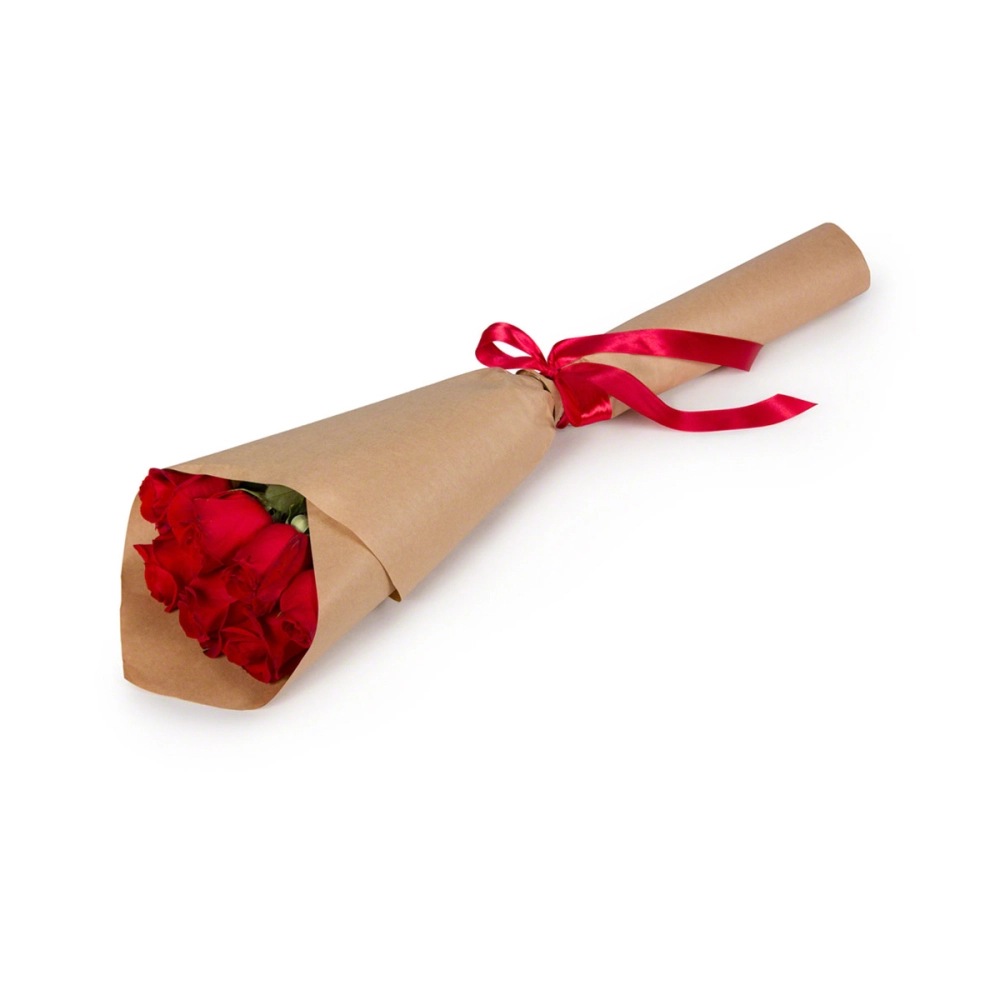 Элегантный букет из красных роз в экологичной крафтовой упаковке — это современное проявление искренних чувств.