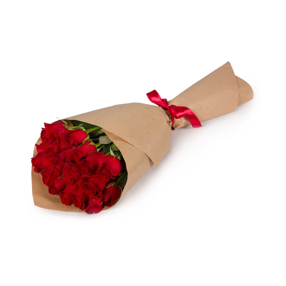 Букет из 21 красной розы в крафтовой упаковке
