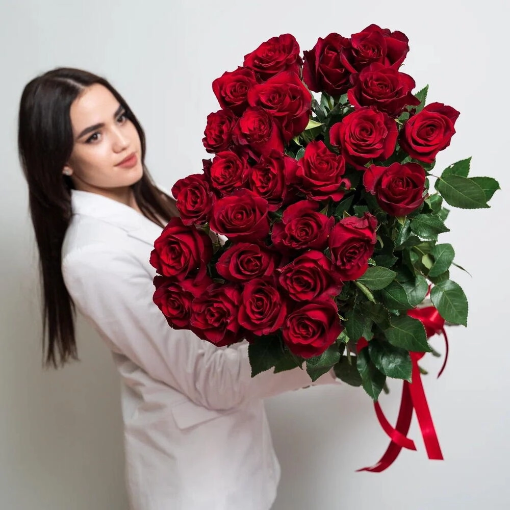 25 великолепных красных роз сорта «Эксплорер» в элегантной упаковке — воплощение страсти и безупречного вкуса. Идеальный выбор для признания в любви, юбилея или особого события. Заказать букет роз Бугульма.